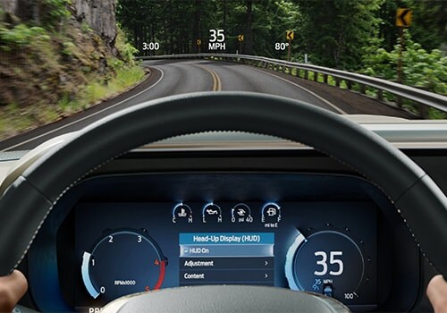 Important information - including speed limit, driver-assist details, and more - is projected onto the windshield with this available feature.*Plus, you can customize the details you see, like off-road and towing-specific information.