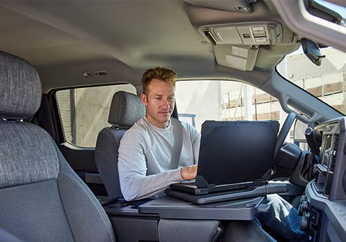 Handle business in comfort wherever the job takes you, with an available ergonomic work surface.