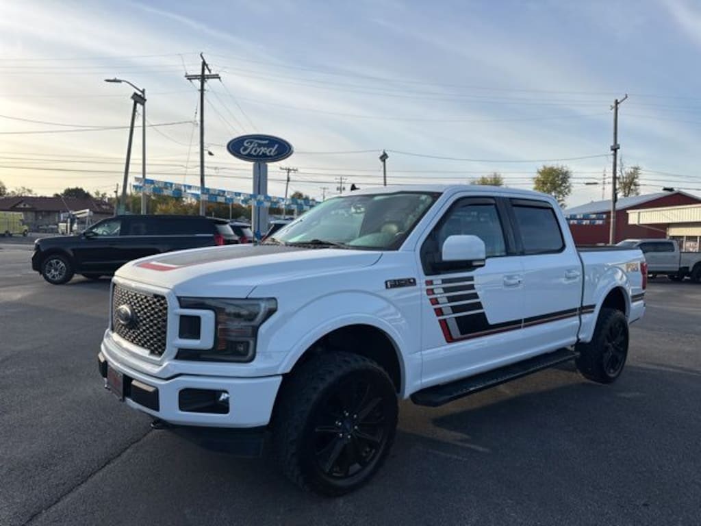2019 Oxford White Ford F-150 Lariat 10-Speed Automatic 3.5L V6 EcoBoost 4WD Streaming Music, Diagnostic Alerts, USB Charging ports, Cruise Control, Backup Camera, Keyless Entry, Multi-zone Climate Control, Power Locks, Power Windows, Bluetooth, Hands-Free, Navigation, Portable Audio Connection, Premium Audio, Security System, Heated Seats, Leather Seats, Premium Wheels, Sunroof, Trailer Hitch, 110V/400W Outlet, 2nd Row Heated Seats, BLIS Blind Spot Information System, Chrome 2-Bar Grille w/4 Minor Bars, Chrome Angular Step Bars, Chrome Door & Tailgate Handles w/Body-Color Bezel, Chrome Skull Caps on Exterior Mirrors, Equipment Group 502A Luxury, Heated Steering Wheel, Lariat Chrome Appearance Package, Leather-Trimmed Bucket Seats, LED Sideview Mirror Spotlights, Power Glass Sideview Mirr w/Chrome Skull Caps, Power Tilt/Telescoping Steering Column w/Memory, Quad Beam LED Headlamps & LED Taillamps/Fog Lamps, Radio: B&O Sound System by Bang & Olufsen, Rain-Sensing Wipers, Remote Start System w/Remote Tailgate Release, Reverse Sensing System, Single-Tip Chrome Exhaust, Universal Garage Door Opener, Wheels: 18 Chrome-Like PVD, Windshield Wiper De-Icer. Odometer is 16612 miles below market average! Priced below KBB Fair Purchase Price! At Bill Dobson Ford we believe in MARKET VALUE PRICING all vehicles in our inventory. We use real-time Internet price comparisons to constantly adjust prices to provide ALL BUYERS The BEST VALUE possible. We do not mark them up, to mark them down! We utilize state-of-the-art technology to constantly monitor pricing trends in order to offer our shoppers the best competitive pricing and value. Our entire team is committed to helping you buy a car the way we would want to buy a car! We sell and service all makes and models of Pre-owned / Used Vehicles Used Cars, Used Trucks, Used Sport Utility, 10K under used cars, Ford, Chevrolet/Chevy, Honda, Toyota, Porsche, Land Rover, Jaguar, INFINITI, Audi, Nissan, Mazda, Hyundai, Chrysler, Jeep, Dodge, Ram, SRT, Mitsubishi, Lexus, Kia, Volkswagen, Mini, BMW, Mercedes, Fiat, Volvo, GMC, Cadillac, Lincoln as well as other brands. Proudly serving these areas Indiana, Montgomery, Vincennes, Loogootee, Bloomfield, Petersburg, Odon, Plainville, Elnora, Linton & Wheatland. A Dobson Deal is a Better Deal!!!! Call 812-618-1647.