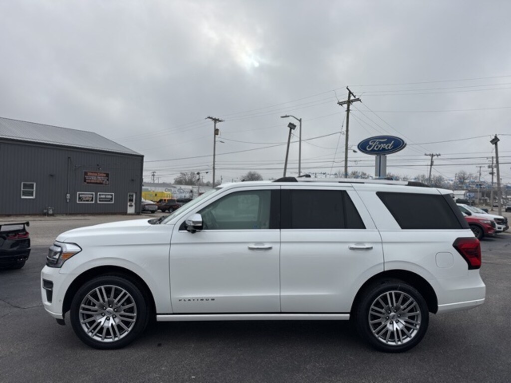 2024 Star White Metallic Tri-Coat Ford Expedition Platinum 10-Speed Automatic EcoBoost 3.5L V6 GTDi DOHC 24V Twin Turbocharged 4WD CARFAX One-Owner. Clean CARFAX. Streaming Music, Diagnostic Alerts, USB Charging ports, Cruise Control, Backup Camera, 3rd Row Seats, Keyless Entry, Multi-zone Climate Control, Power Locks, Power Windows, Bluetooth, Hands-Free, Navigation, Portable Audio Connection, Premium Audio, Security System, Heated Seats, Leather Seats, Premium Wheels, Sunroof, Trailer Hitch.
