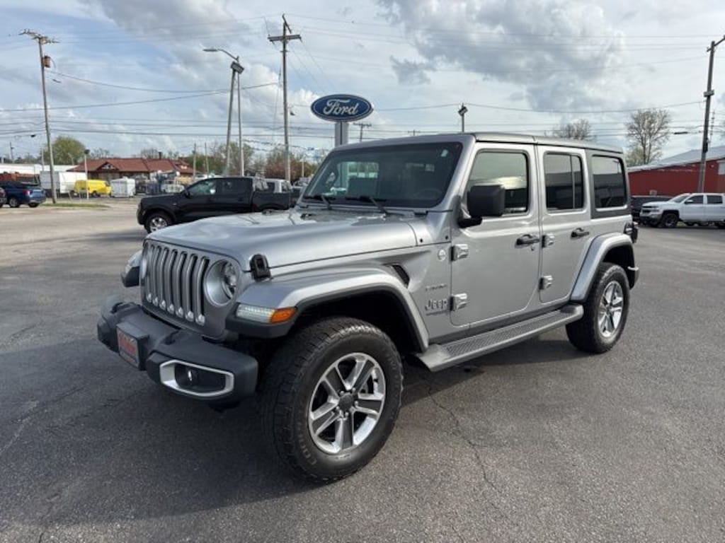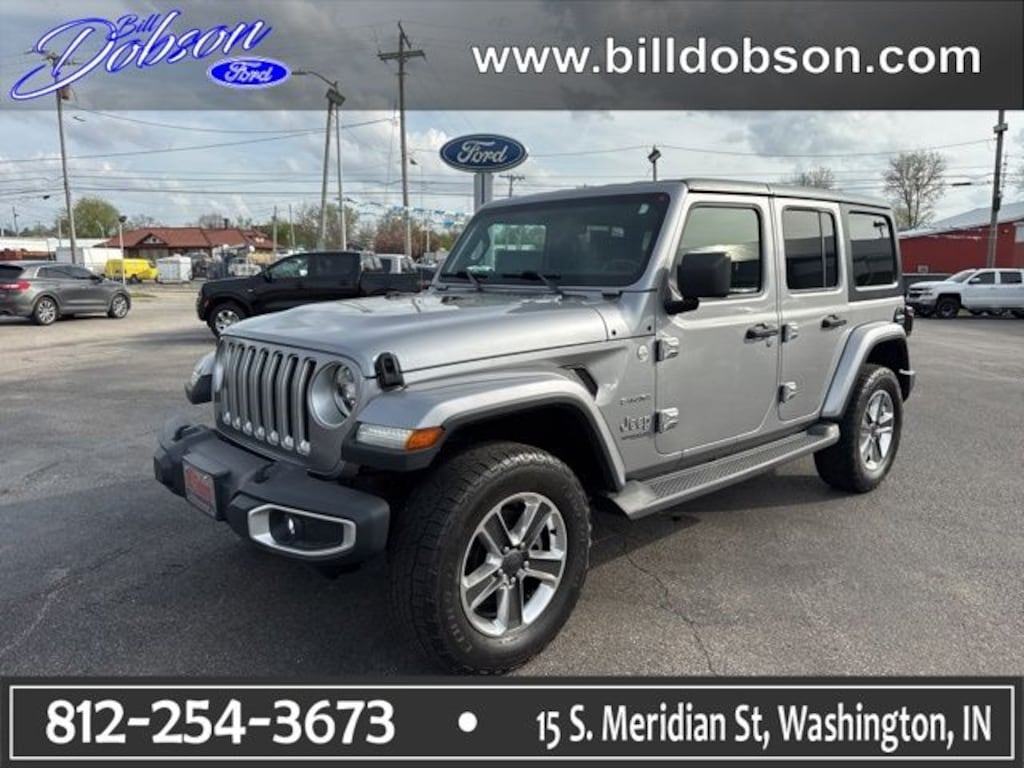 2021 Billet Silver Metallic Clearcoat Jeep Wrangler Unlimited Sahara 8-Speed Automatic 2.0L I4 DOHC 4WD CARFAX One-Owner. Clean CARFAX. Streaming Music, Diagnostic Alerts, USB Charging ports, Cruise Control, Backup Camera, Keyless Entry, Multi-zone Climate Control, Power Locks, Power Windows, Bluetooth, Hands-Free, Navigation, Portable Audio Connection, Premium Audio, Security System, Heated Seats, Leather Seats, Premium Wheels, Cold Weather Group, Daytime Running Lamps LED Accents, Front LED Fog Lamps, Heated Front Seats, Heated Steering Wheel, LED Lighting Group, LED Premium Reflector Headlamps, LED Taillamps. At Bill Dobson Ford we believe in MARKET VALUE PRICING all vehicles in our inventory. We use real-time Internet price comparisons to constantly adjust prices to provide ALL BUYERS The BEST VALUE possible. We do not mark them up, to mark them down! We utilize state-of-the-art technology to constantly monitor pricing trends in order to offer our shoppers the best competitive pricing and value. Our entire team is committed to helping you buy a car the way we would want to buy a car! We sell and service all makes and models of Pre-owned / Used Vehicles Used Cars, Used Trucks, Used Sport Utility, 10K under used cars, Ford, Chevrolet/Chevy, Honda, Toyota, Porsche, Land Rover, Jaguar, INFINITI, Audi, Nissan, Mazda, Hyundai, Chrysler, Jeep, Dodge, Ram, SRT, Mitsubishi, Lexus, Kia, Volkswagen, Mini, BMW, Mercedes, Fiat, Volvo, GMC, Cadillac, Lincoln as well as other brands. Proudly serving these areas Indiana, Montgomery, Vincennes, Loogootee, Bloomfield, Petersburg, Odon, Plainville, Elnora, Linton & Wheatland. A Dobson Deal is a Better Deal!!!! Call 812-618-1647.