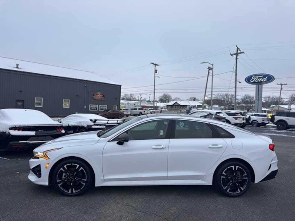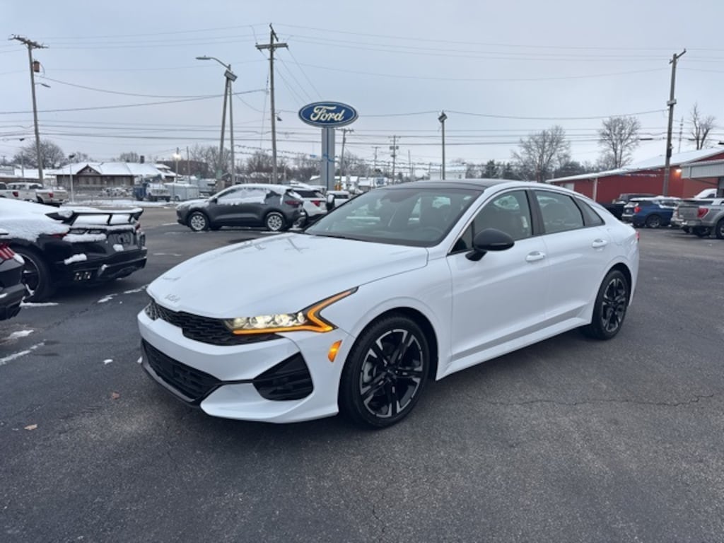 2022 Glacial White Pearl Kia K5 GT-Line Premium 8-Speed Automatic I4 FWD Streaming Music, Diagnostic Alerts, USB Charging ports, Cruise Control, Backup Camera, Keyless Entry, Multi-zone Climate Control, Power Locks, Power Windows, Bluetooth, Hands-Free, Navigation, Portable Audio Connection, Premium Audio, Forward Collision Avoidance-Assist - Cyclist, Forward Collision Avoidance-Assist - Junction Turn, Gloss Black Pillar & Door Frame Cover, GT-Line FWD Premium Package, GT-Line Red Interior Package, Highway Driving Assist, LED Interior Lighting, LED Projection Headlights, Navigation System, Navigation-Based Smart Cruise Control - Curve, Panoramic Sunroof, Smart Cruise Control w/Stop & Go. 27/37 City/Highway MPG